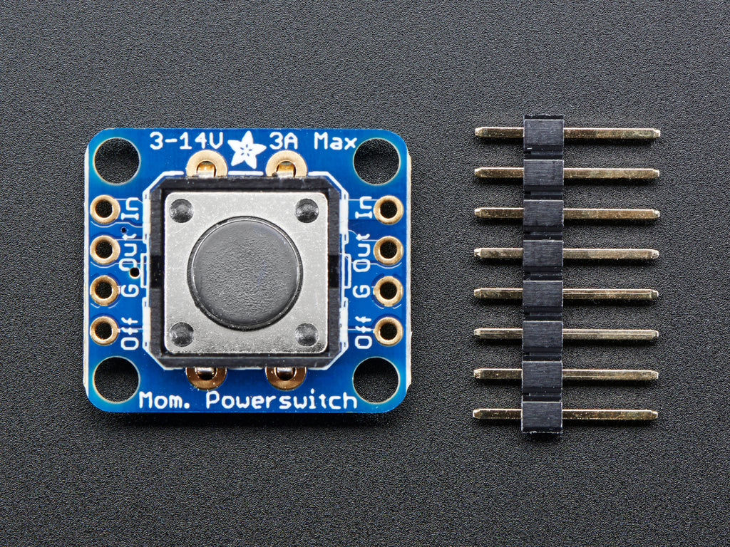 The power switch is an elegant way to control power to your project, but there are some things to keep in mind: since there is a pass FET, this is only for 3-14V DC voltages. This is not a mechanical switch so there is no air-gap isolation. There is a 'body diode' in the pass FET so if the load has a voltage on it that is higher than the input voltage, current will flow back to the input. There is built-in debouncing but very bouncy switches can be annoying as they will turn on and off fast instead of latching.