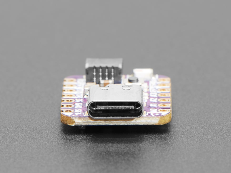 Pinout and shape are Seeed Xiao compatible, with castellated pads. In addition to the QT connector, we also added an RGB NeoPixel (with controllable power pin to allow for ultra-low-power usage), a reset button (great for restarting your program or entering the bootloader), and a button on GPIO 0 for entering the ROM bootloader or for user input