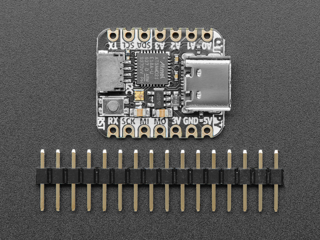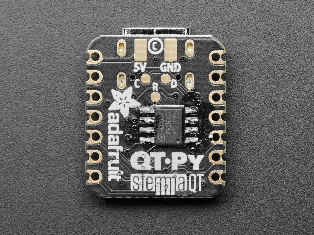 Runs Arduino like a dream, and can be used for basic CircuitPython projects. For more advanced usage like datalogging or file storage, solder an SOIC SPI flash chip onto the bottom pads,