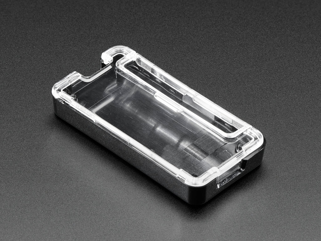 This is a basic, classic Pi Zero enclosure with a black base and a clear top. The case is as minimal as it gets, coming in just two pieces of polycarbonate that snap snugly together. This case will keep your Pi Zero safe and secure while also looking super sleek. You can use all of the connectors on the edges of the Pi: mini HDMI, microSD slot, microUSB power, and microUSB port. There's also a cut out to allow a 2x20-pin header to be soldered onto the Pi Zero.