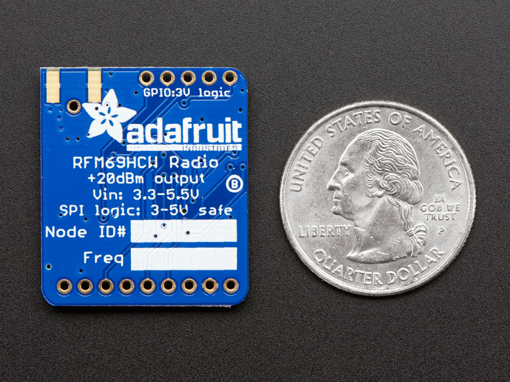 This is the 900 MHz radio version, which can be used for either 868MHz or 915MHz transmission/reception - the exact radio frequency is determined when you load the software since it can be tuned around dynamically. We also carry an RFM69HCW 433 MHz version here.These are +20dBm FSK packet radios that have a lot of nice extras in them such as encryption and auto-retransmit. They can go at least 500 meters line of sight using simple wire antennas, probably up to 5Km with directional antennas and settings tweakings