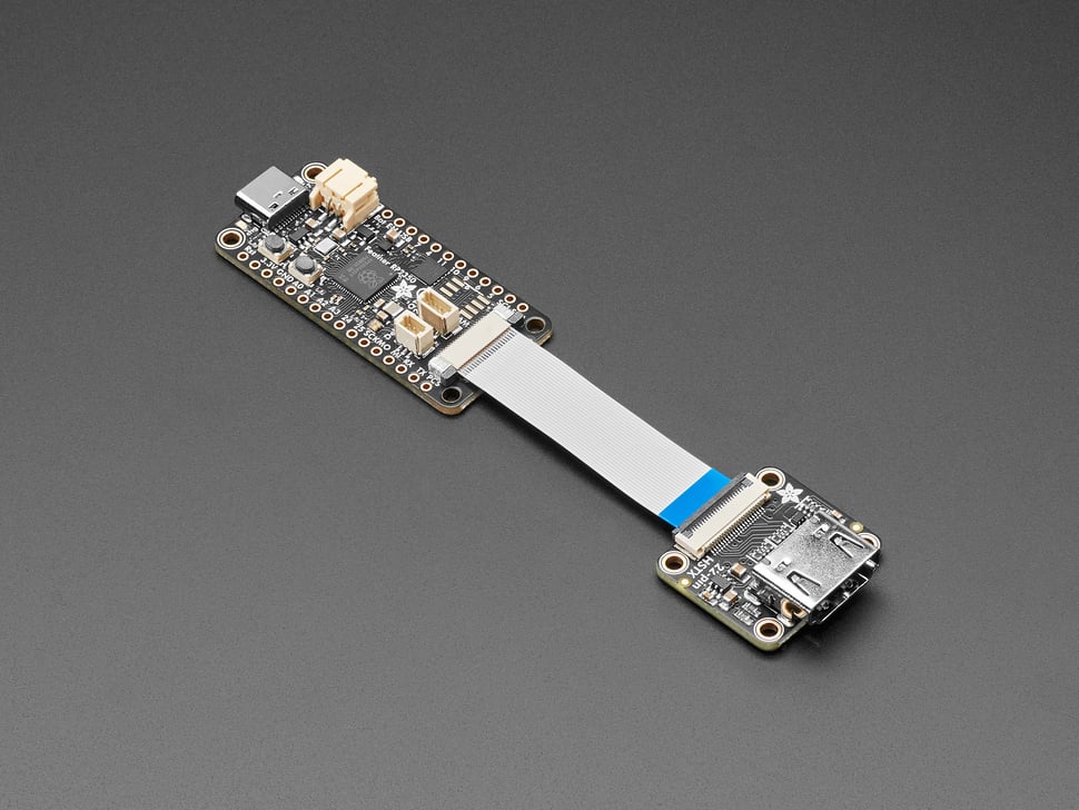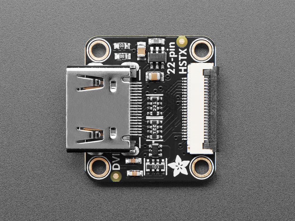 You may have noticed that our RP2350 Feather has an FPC output connector on the end for accessing the HSTX (High Speed Transmission) peripheral. This new capability, not available on the RP2040, is specifically designed to allow the RP2350 chip drive DVI displays really easily! Historically you could use DVI on the RP2040 by mashing together some overclocking and a lot of PIO - it works but its quite hacky. The HSTX peripheral is streamlined, and doesn't require PIO or overclocking and there's a lot more RAM on the RP2350.