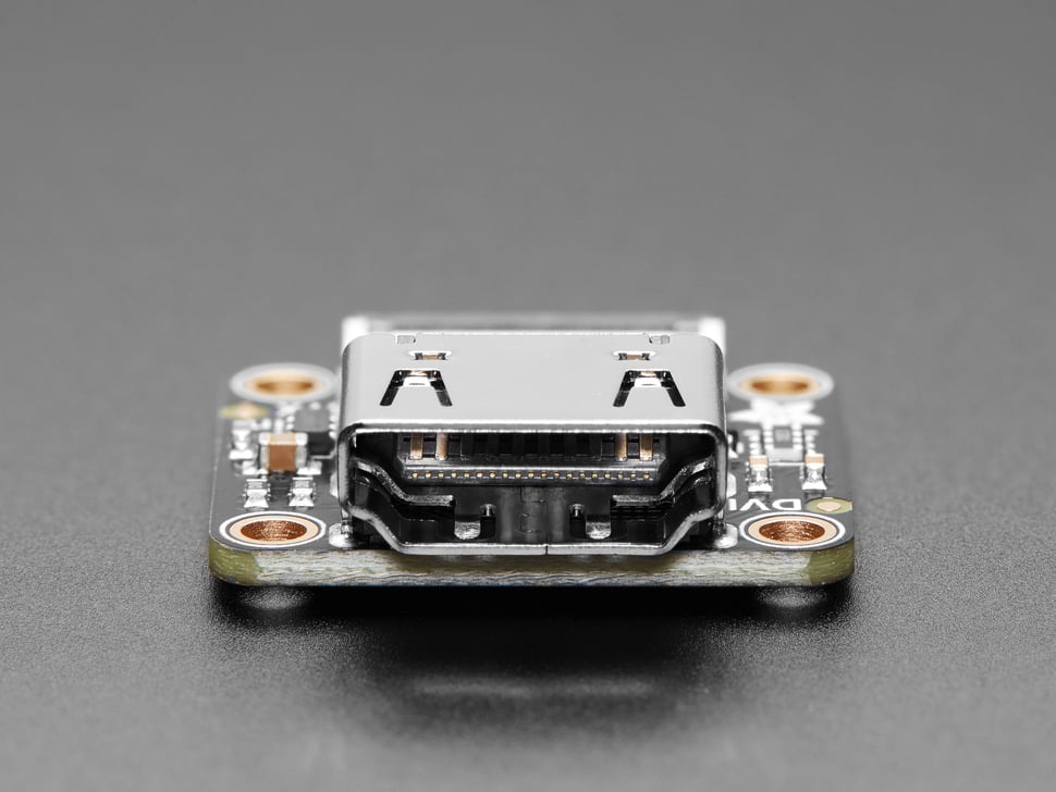 The eight HSTX lines are connected to the differential Clock (IO #14 & 15), Lane0 (#18, 19), Lane1 (#16, #17), and Lane2 (#12, #13) connections. I2C is connected as well so you can read the display EEPROM. Hot-plug-detect is connected to IO #11 on the Feather, but can be disconnected by cutting a jumper on the bottom. Ditto for CEC which we connect by default to IO #10.