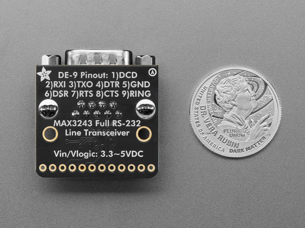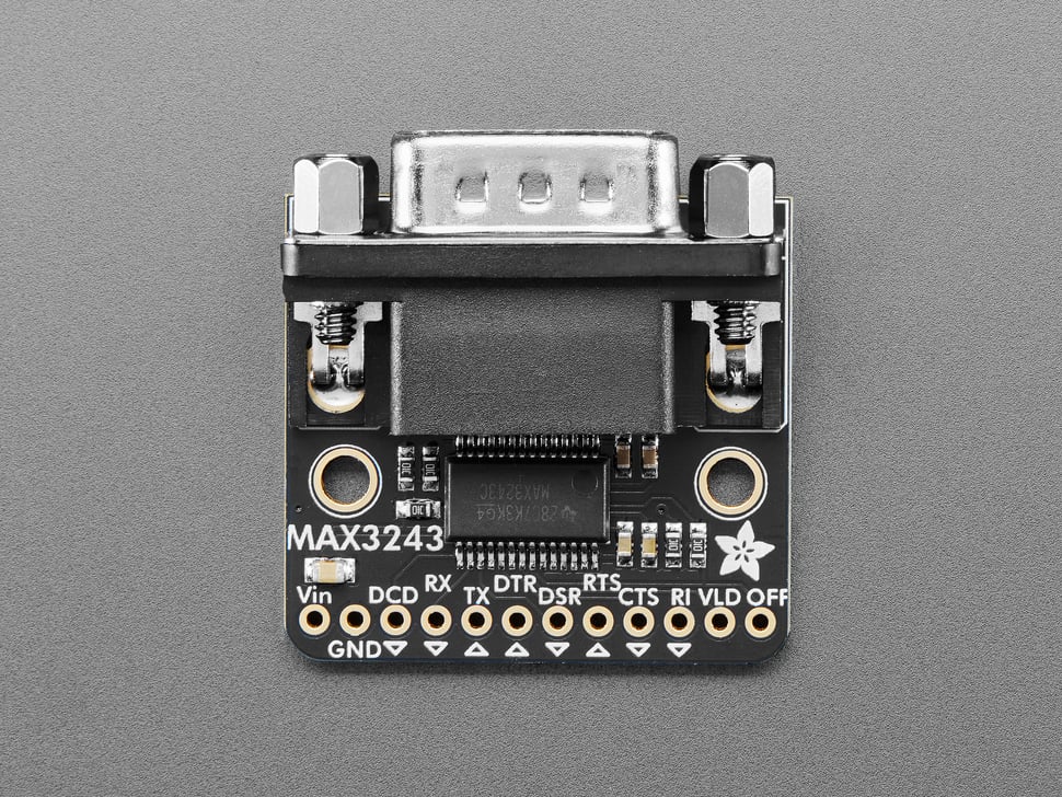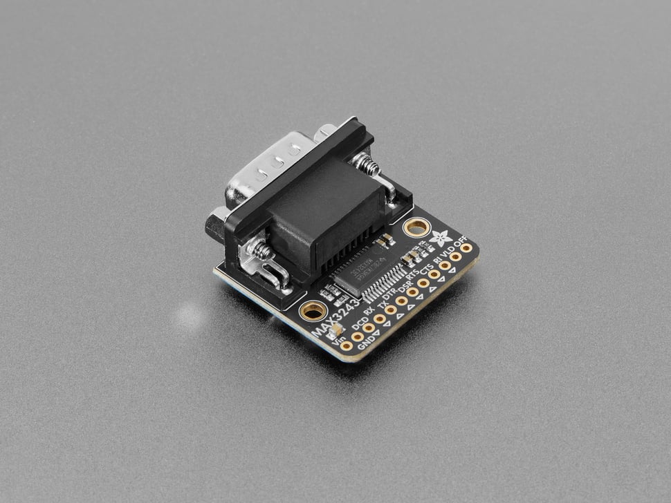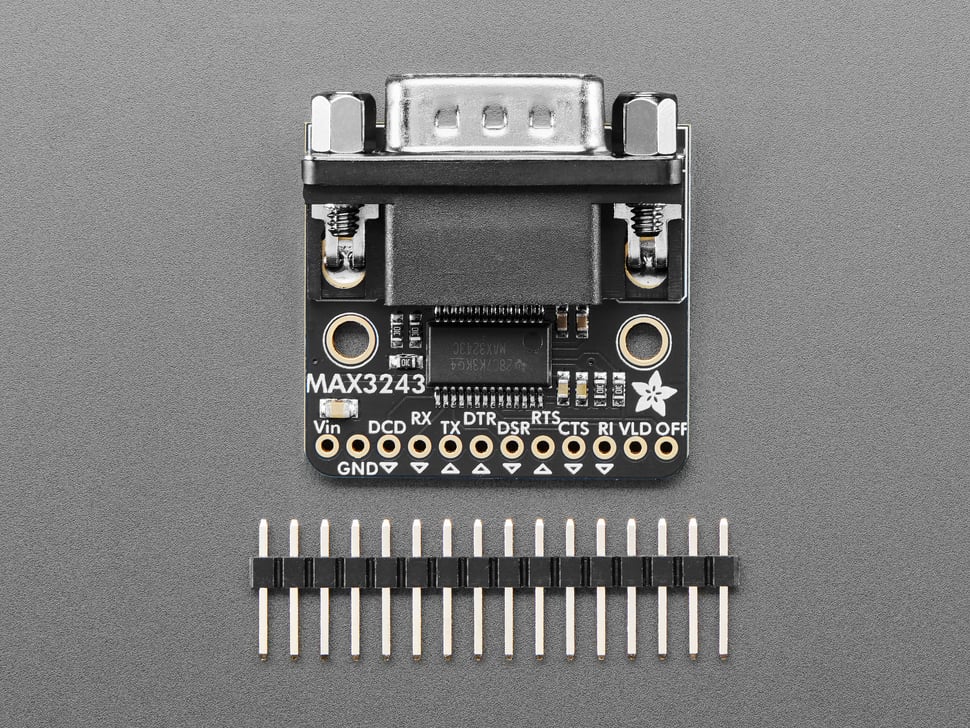 This breakout comes fully assembled with a UART side for low-voltage power/logic level, and a DE-9M RS-232 side for high-voltage signals. We also include some headers so you can solder to a breadboard in a few minutes.