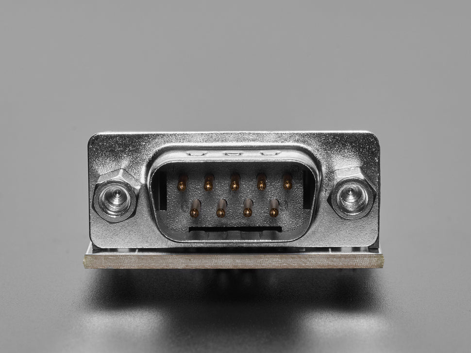 This version has a DE9-M 'male' pin connector soldered in, take a look at the pictures to make sure this matches the device or cable you want to connect to!