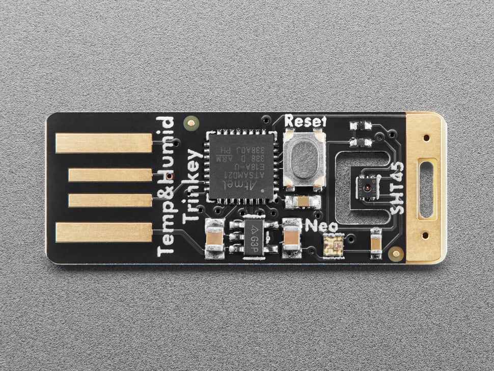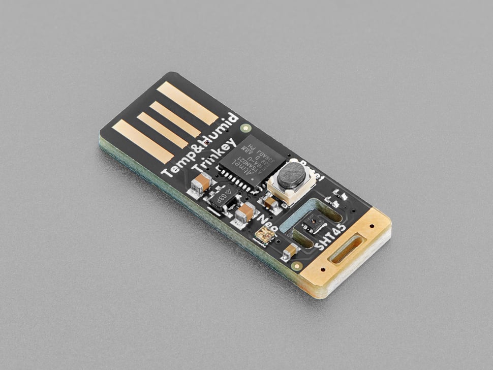 This Trinkey combines a USB key with a temperature and humidity sensor, making it easy to add to any computer with a USB A port.