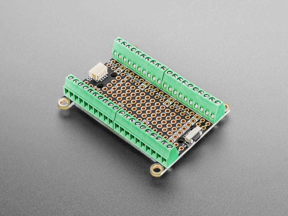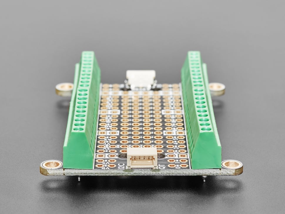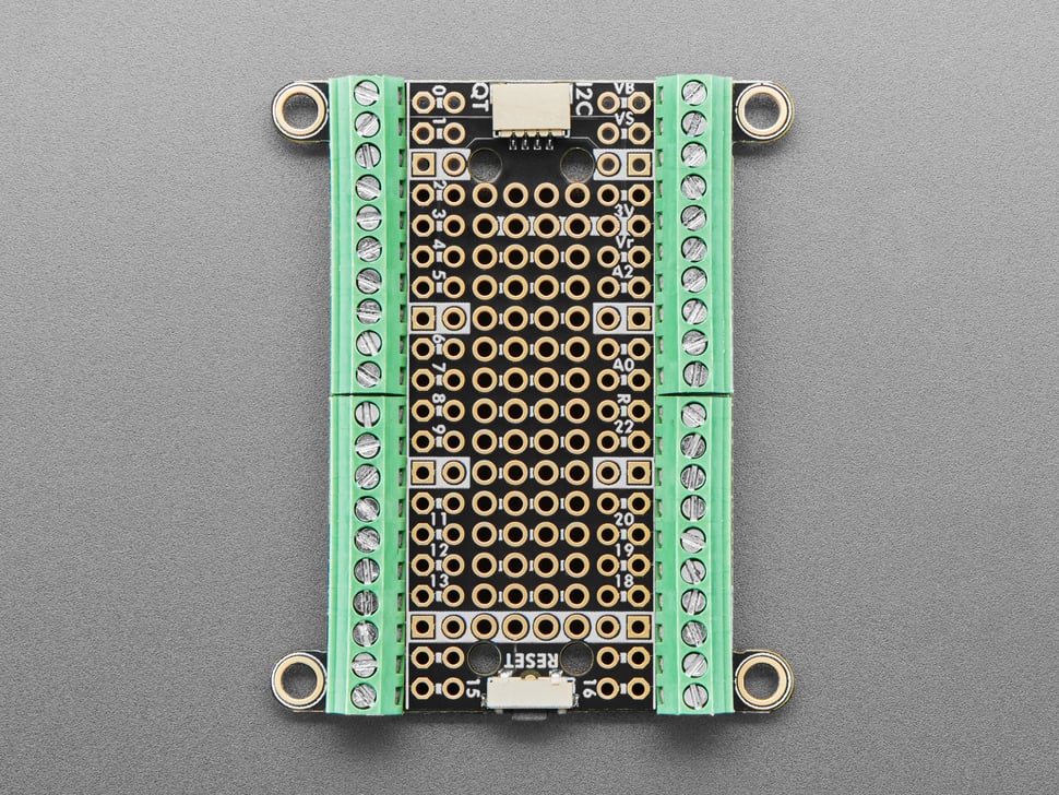 There is an extra set of 4 breakout holes next to the JST SH in case you want more I2C connections or want to re-assign the I2C port. - 15 rows of 8-hole connected strips in the center area. You can cut the traces between the holes, but they're intended to be treated like a mini-mini breadboard