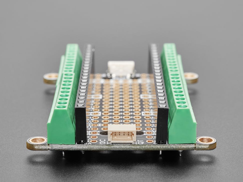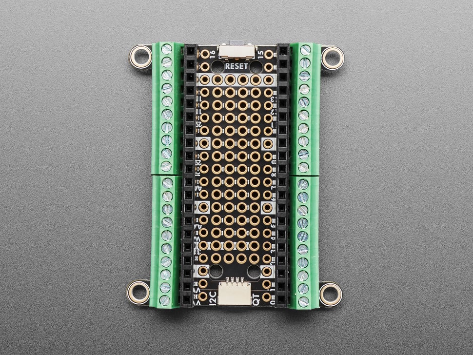 There is an extra set of 4 breakout holes next to the JST SH if you want more I2C connections or want to re-assign the I2C port. - 12 rows of 4-hole connected strips in the center area. You can cut the traces between the holes, but they're intended to be treated like a mini-mini breadboard