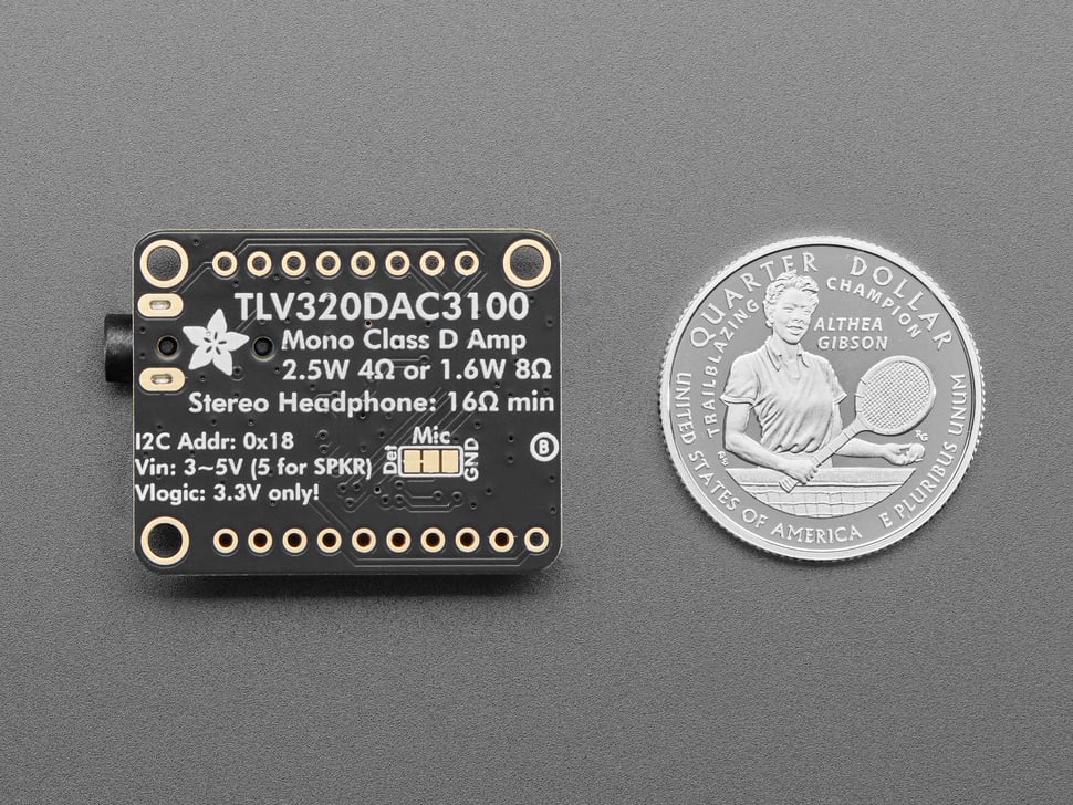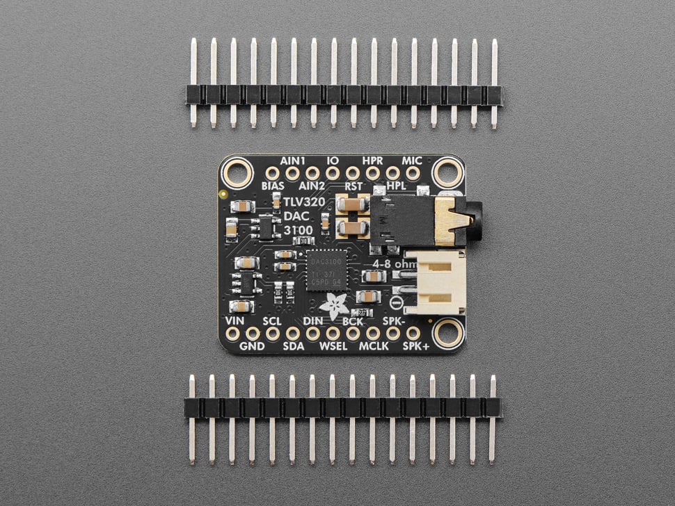 Each order comes with one Adafruit TLV320DAC3100 DAC breakout and some header you can solder on for breadboard usage.
