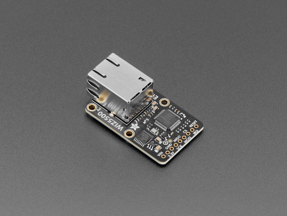 Ethernet is a tried-and-true networking standard. Every hub and switch supports it, and because there's a physical connection, you don't have to noodle around with SSIDs, passwords, authentication schemes, or antennas. The WIZ5500 chip communicates over SPI plus a single CS pin. The Arduino/CircuitPython support libraries work well, and within a few seconds of connection, it will perform the DHCP setup for you.