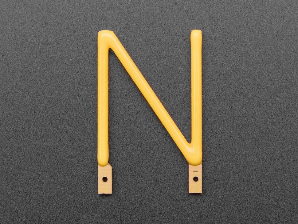 This warm-white glowy letter is made out of COB (chip on board) LEDs, often seen in 'Edison-like' LED bulbs, arranged in different patterns to give a bright, warm lighting effect. They're made of dozens of micro LED diodes that are bonded together on a stiff metal backing and then coated in silicone for protection. Even though the LEDs are only placed on one side, the PCB substrate is very thin so it glows out the back too (although a little dimmer)