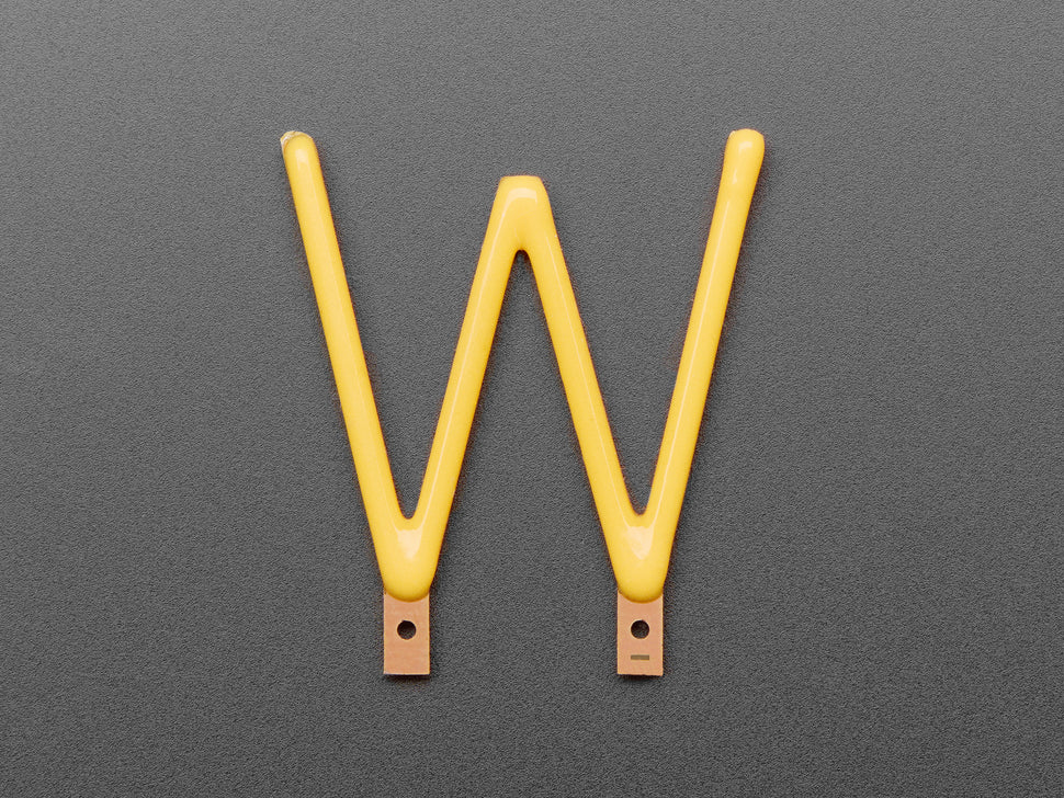 This warm-white glowy letter is made out of COB (chip on board) LEDs, often seen in 'Edison-like' LED bulbs, arranged in different patterns to give a bright, warm lighting effect. They're made of dozens of micro LED diodes that are bonded together on a stiff metal backing and then coated in silicone for protection. Even though the LEDs are only placed on one side, the PCB substrate is very thin so it glows out the back too (although a little dimmer)