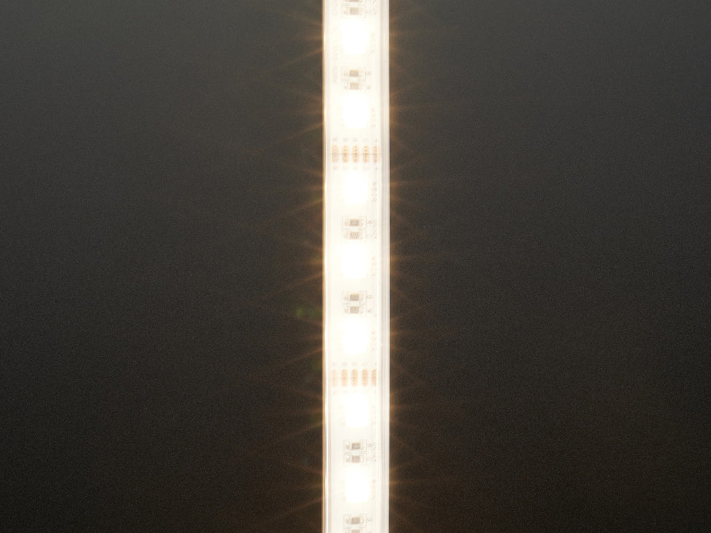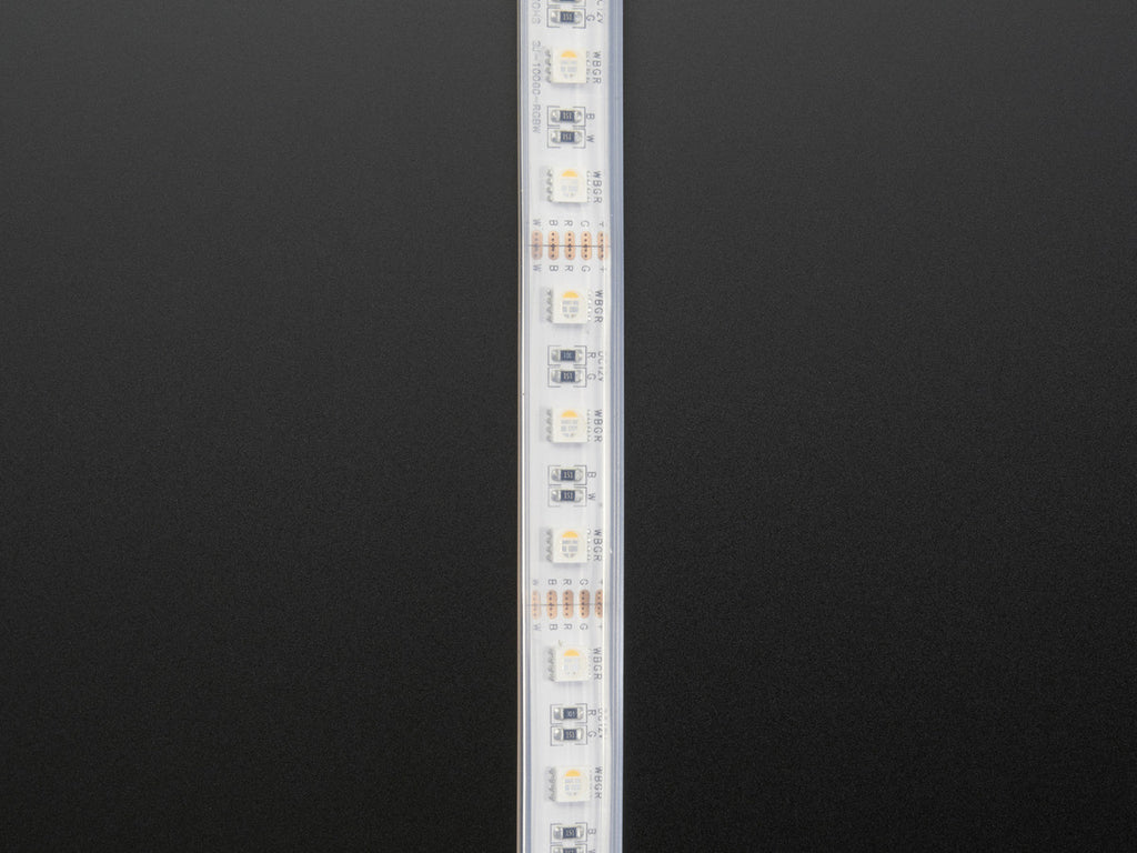 This is the 60 LED-per-meter RGB + Warm White version. We also have this in RGB + Cool White. We splurged and got the weatherproof kind with a white flexi PCB. Great for decorating your bike or art project, costuming or funky fashion.