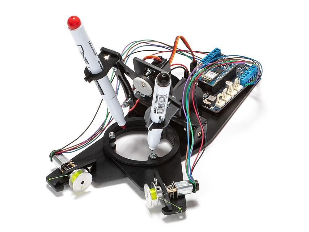 - Several customized parts, a complete set of electronics, and all the mechanical components needed to assemble each project (a webcam controlled rover, a self-balancing motorcycle, and a drawing robot):