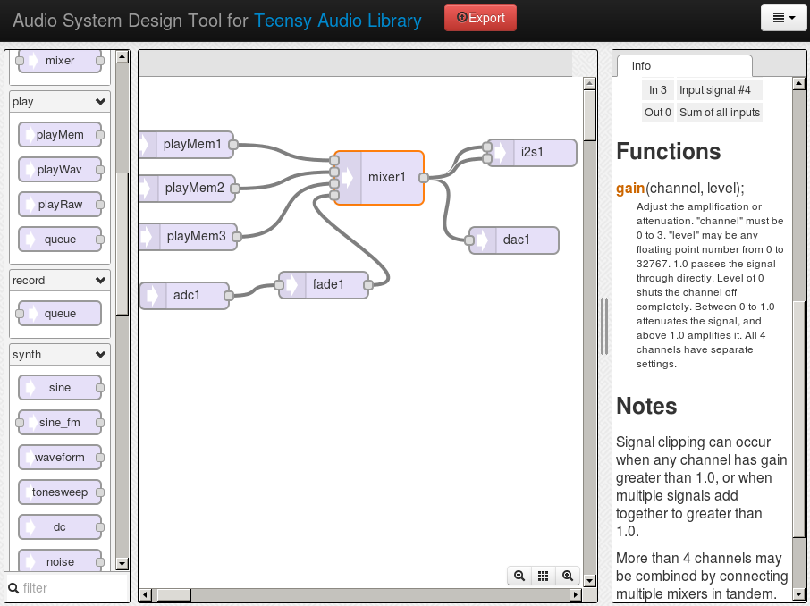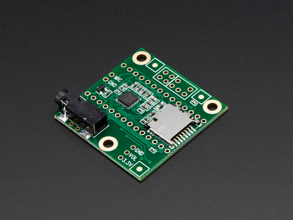 This audio adapter lets you easily add high quality 16 bit, 44.1 kHz sample rate (CD quality) audio to your projects with a Teensy 3.2, 3.5 or 3.6. It supports stereo headphone and stereo line-level output, and also stereo line-level input or mono microphone input.