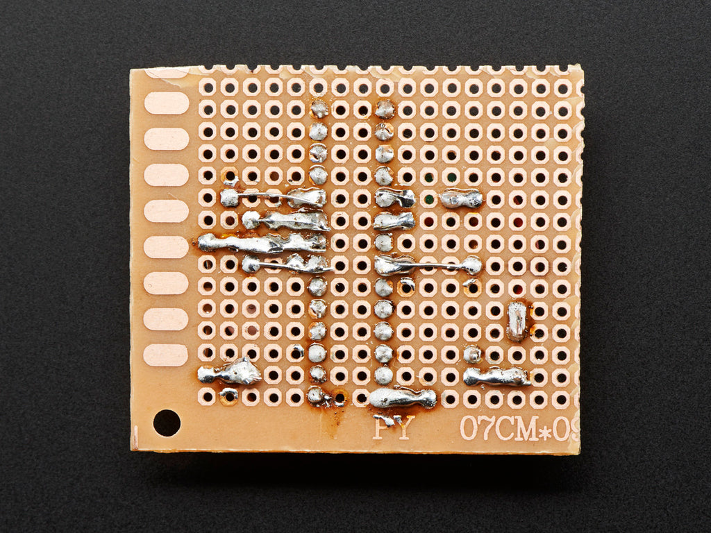 A perfboard as opposed to our classic perma-protos or breadboards has no default connectivity so you have total freedom with how you'd like to lay-out your circuits. Cut and solder away!