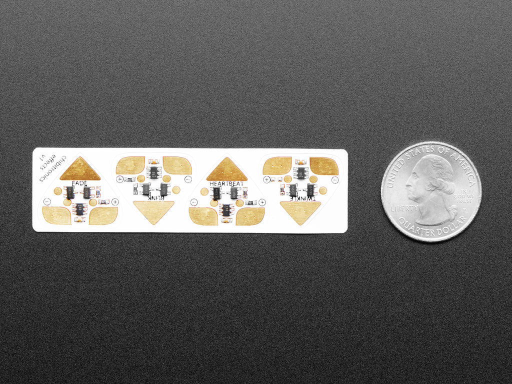 This is the Chibitronics Effects Add-on Pack. It contains four effects stickers to add blinking, fading, twinkling, and heartbeat effects to projects and is a great addition to the Chibitronics Starter Kit.