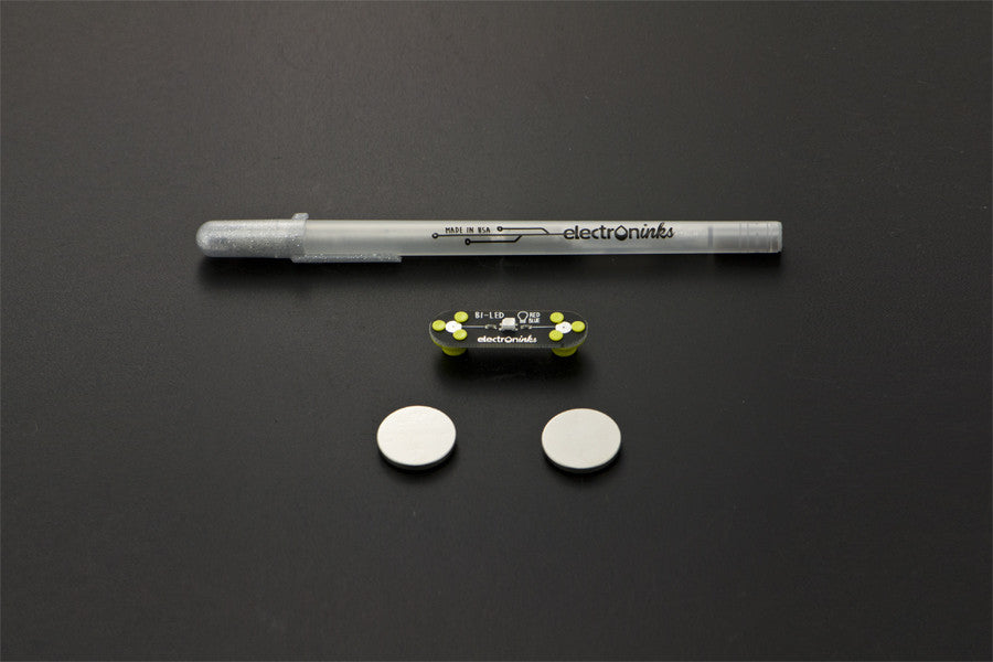 The Circuit Scribe Lite kit is a basic kit in Circuit Scribe family, it could make creating circuits as easy as doodling. And there is a rollerball pen that writes with conductive silver ink in the kit. it could be used for any type of circuit you want to create.