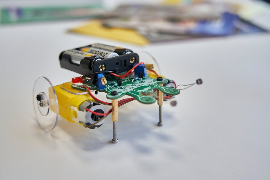 Dusty is a simple-to-use robotic companion that guides learners through the fundamentals of transistors, soldering, and electronic components while responding to light.