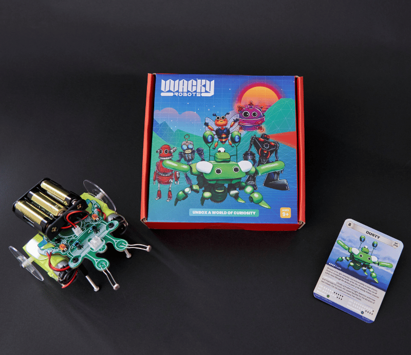 Dusty is able to traverse surfaces with the aid of photoresistors that allow it to follow a light source. Gain insight into electronics by consulting your manual for interesting facts and learn all about the components powering Dusty. Encourage creative expression with Dusty and share it with your friends.