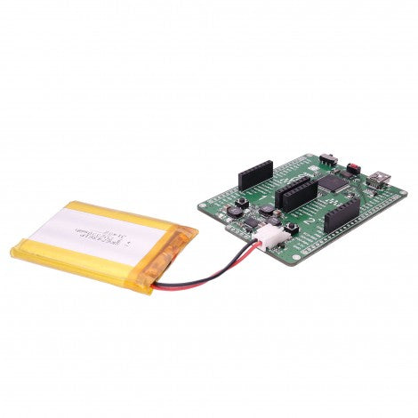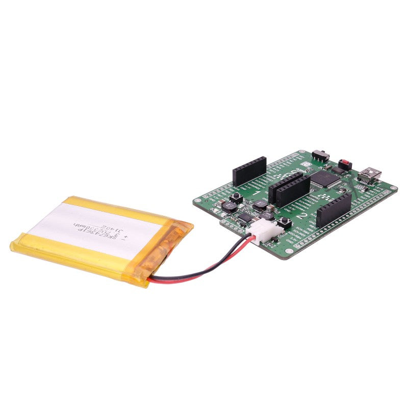 Focus on your main idea because clicker 2 will take care of the details for you: your prototype already has a power management system in place. The onboard LTC®3586-1 IC will provide 3.3V or 5V to the clicks. It turns the USB port into a battery charger. For convenience, clicker 2 for PIC24 features a reset button and an ON/OFF switch (you can also connect an external ON/OFF switch).