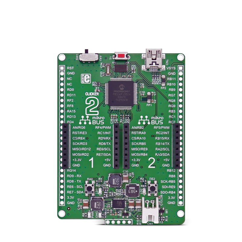 Programming. To make your prototyping experience as convenient as possible, clicker 2 for PIC24 is preprogrammed with a USB HID bootloader. Just download our mikroBootloader application and you’re ready to upload your firmware. MikroProg for PIC, dsPIC and PIC32 connector enables programming through external programmer/debugger. For more information see our article about Bootloaders.