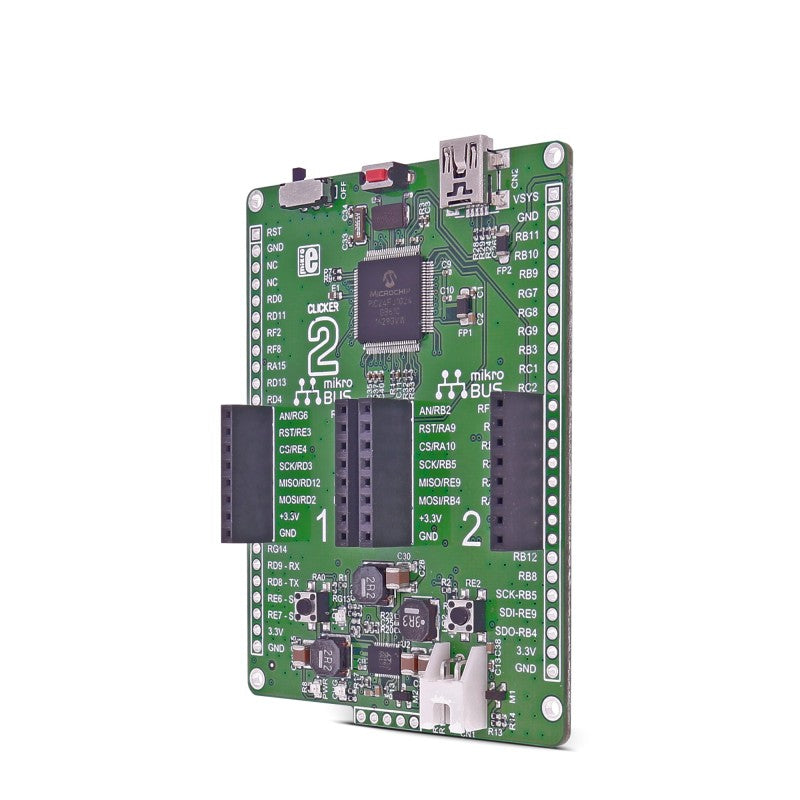 Thousands of possibilities with click boards. With two mikroBUS™ sockets on clicker 2, you can take advantage of the huge potential of Click boards™, the constantly expanding range of over 750 add-on boards. Blend different functionalities together and come up with new and original inventions. That’s just two clicks and your project is half-way done. Go ahead and play with a few ideas right away.