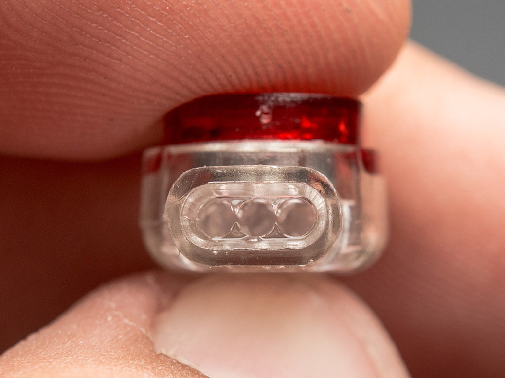 This is a three-way butt splice. Connect two or three 19-26 AWG solid-core wires by sliding them in and then squeezing all at once. It's an easy way to connect multiple wires without soldering.