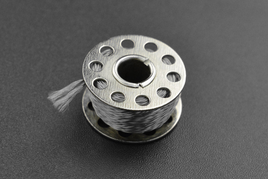 This is a smooth stainless steel fiber conductive sewing thread. It features small resistance, good thermal conductivity, high melting point and high-temperature resistance. One roll has 10m sewing thread, and about 10-15Ωper 1m. The diameter of the wire is 0.42mm. It can be used for making touchscreen gloves, anti-static clothing, wearable electronic equipment, anti-static brush, driving LED and other small current electronic components.