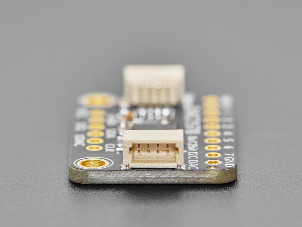 The breakout for the DAC7578 is populated with the required support circuitry to use it with your microcontroller of choice or Blinka-supported computer. The SparkFun Qwiic compatible STEMMA QT JST SH connectors ease the process of connecting the DAC7578 to your project and allows you to easily share an I2C bus with other STEMMA QT, Qwiic, Grove, or other compatible sensors. QT Cable is not included, but we have a variety in the shop.