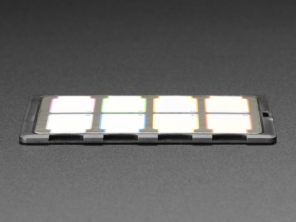 Our customized Adafruit memory card holder features a colorful Raspberry Pi GPIO pinout diagram on one side, and 8 write-able panels to note memory card contents on the other.