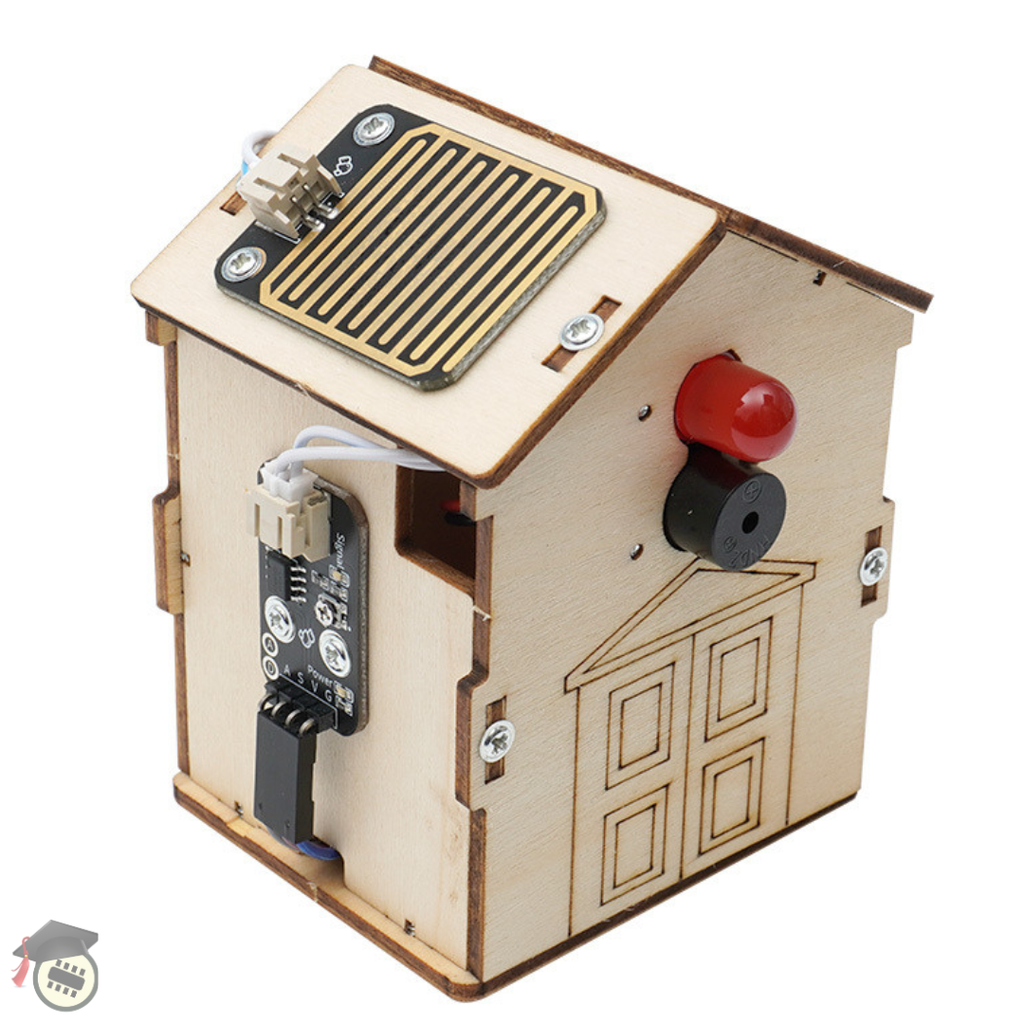 This rain sensor kit includes a water drop sensor, LED indicator, buzzer, and a main control board. When the sensor detects rainfall, it triggers an alert to notify users of the current rain conditions.