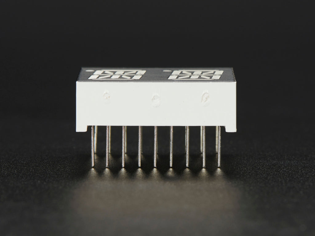 There are nine pins per side on these, so 18 pins total, with 0.1" spacing so you can easily plug it into a breadboard with one row on each side for wiring it up. Note that these may not color-match our other red 7-segment displays due to process-differences.