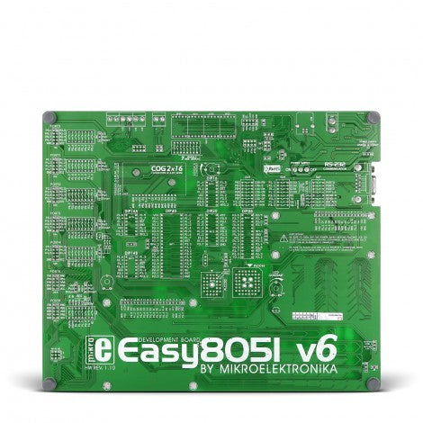 The Easy8051 v6 is compatible with 14-, 16-, 20-, 28-, 40-pin PLCC44 and PLCC32 MCUs. It comes with an AT89S8253. The board has a USB 2.0 programmer and many peripherals such as port expander, MENU and 4x4 keypads etc.