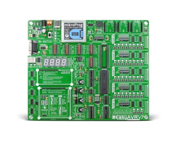 Powerful on-board mikroProg™ programmer can program over 64 AVR® microcontrollers from Atmel®. You will need it, whether you are a professional or a beginner.