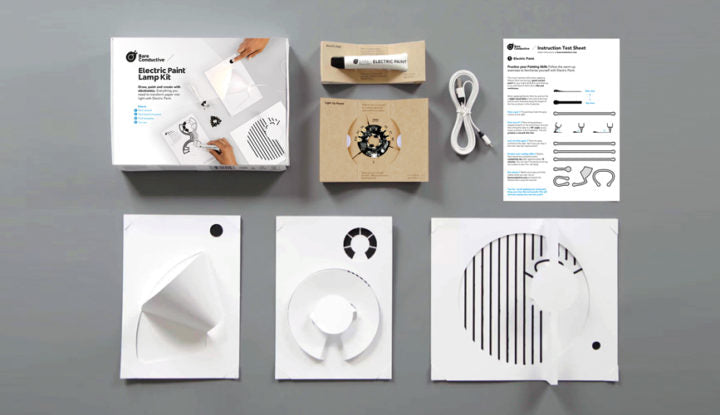 The Electric Paint Lamp Kit is easy to use and makes a perfect gift. The Touch, Dimmer, and Proximity lamps all show off different aspects of Electric Paint and the Light Up Board and are perfect for your home, office or workshop.