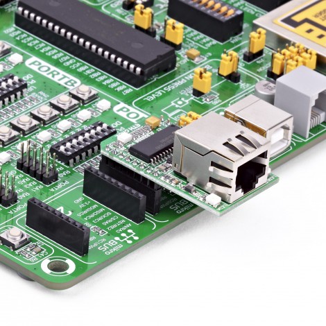Type Ethernet Applications Can be used for industrial automation, home control, security and instrumentation applications, and many more On-board modules ENC28J60 - stand-alone Ethernet controller from Microchip Key Features IEEE 802.3™ Compatible Ethernet Controller, fully compatible with 10/100/1000Base-T networks, integrated MAC and 10Base-T PHY, Half-Duplex Mode, SPI interface, configurable 8Kb TX/RX buffer, multifunctional interrupt, link and network status indicators, and more Interface GPIO,SPI Compatibility mikroBUS Click board size M (42.9 x 25.4 mm) Input Voltage 3.3V