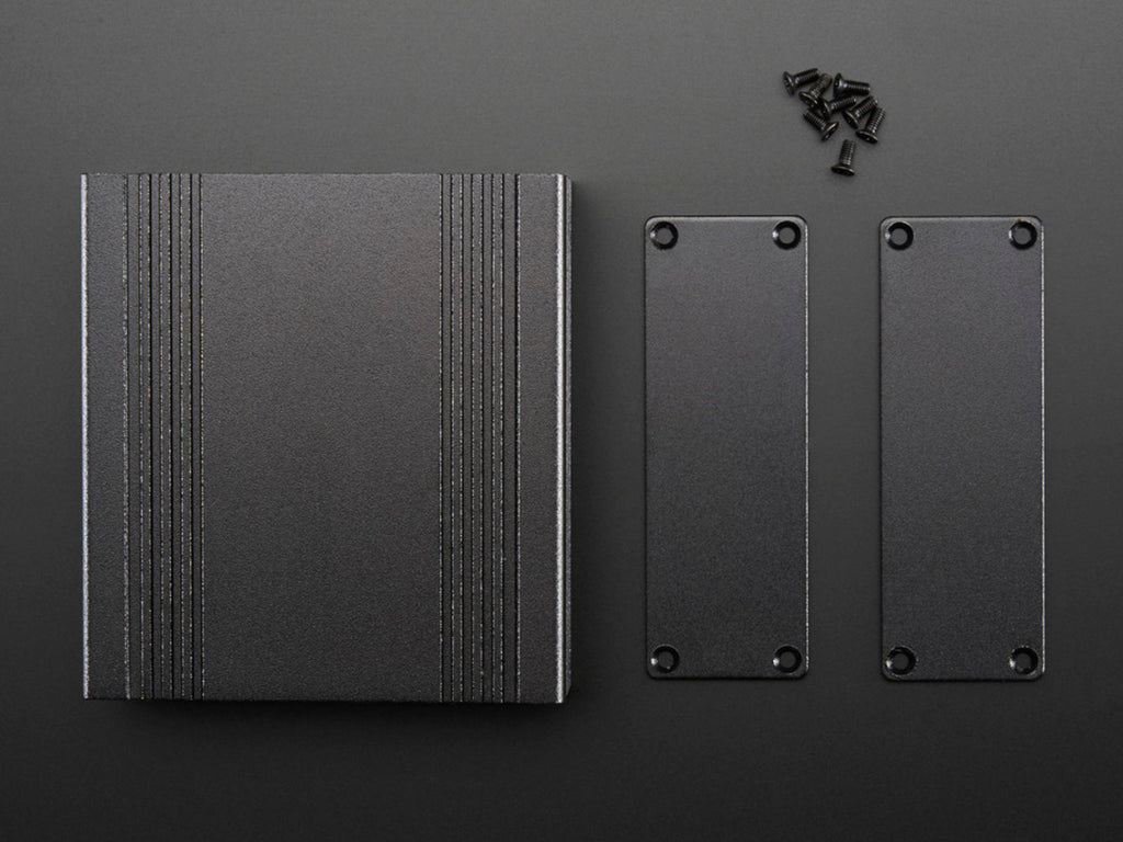 These also come in a nice dark anodized-black aluminum. Each comes with a box, eight screws, and two panels for the sides. Screws are 6mm length, M2.5 size, with a .45mm pitch if you lose one or need more.