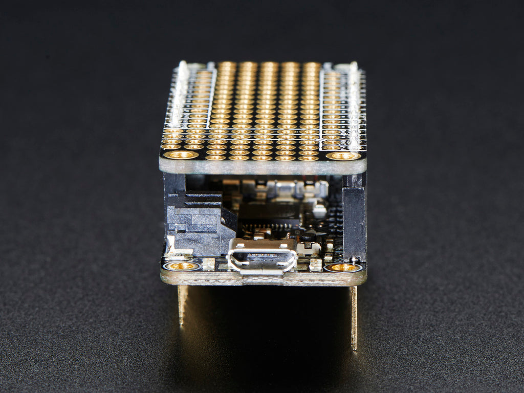 This is the FeatherWing Proto - a prototyping add-on for all Feather boards. Using our Feather Stacking Headers or Feather Female Headers you can connect a FeatherWing on top or bottom of your Feather board and let the board take flight!