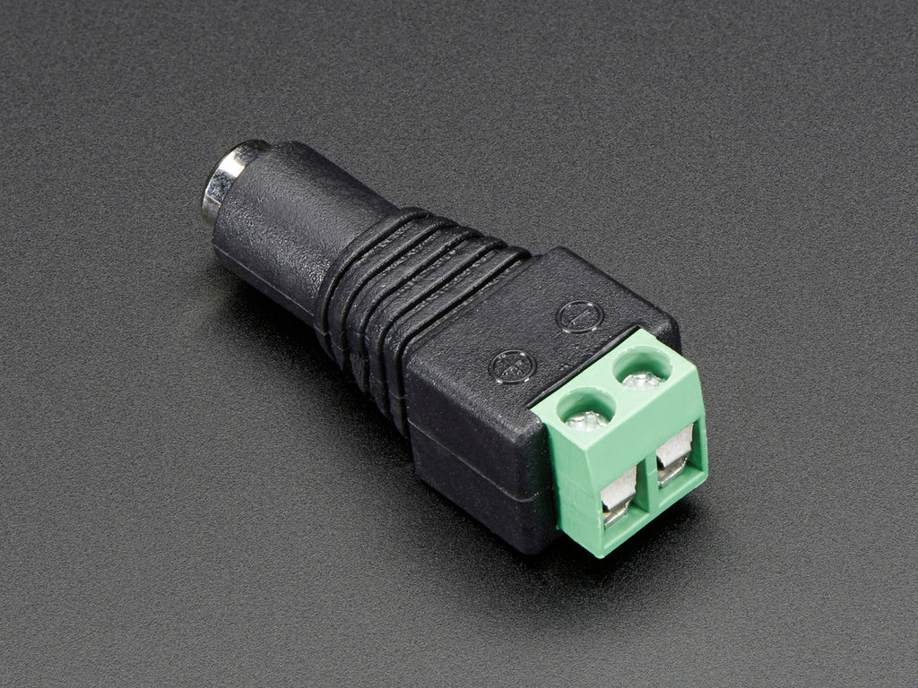 If you need to connect a DC power wall wart to a board that doesn't have a DC jack - this adapter will come in very handy! There is a 2.1mm DC jack on one end, and a screw terminal block on the other. The terminals are labeled with positive/negative assuming a positive-tip configuration (which is the most common)