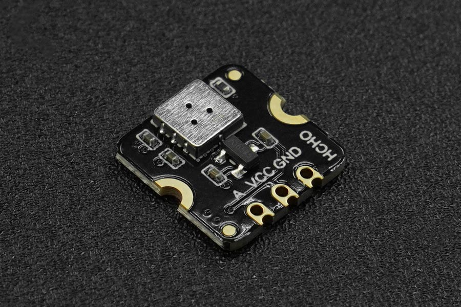 Fermion's MEMS Formaldehyde HCHO Gas Detection Sensor utilizes cutting-edge micro-electromechanical system (MEMS) technology; offering a small form factor of 13x13x2.5mm, low power draw of 20mA, and emission of minimal heat. Preheating is quick and response recovery is rapid, making it ideal for applications in air purifiers, HVAC systems, smart wearables, and portable detectors. This sensor provides qualitative measurement of formaldehyde gas concentrations.