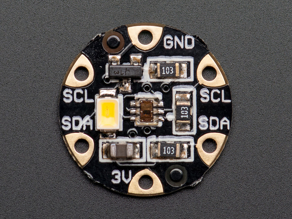 Your electronics can now see in dazzling color with this lovely color light sensor. We found the best color sensor on the market, the TCS34725, which has RGB and Clear light sensing elements. An IR blocking filter, integrated on-chip and localized to the color sensing photodiodes, minimizes the IR spectral component of the incoming light and allows color measurements to be made accurately. The filter means you'll get much truer color than most sensors, since humans don't see IR. The sensor also has an incredible 3,800,000:1 dynamic range with adjustable integration time and gain so it is suited for use behind darkened glass or fabric.