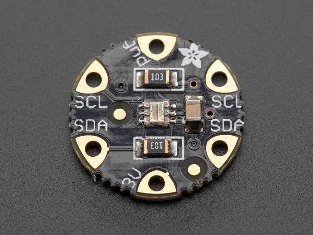 Add light-reactive sensing to your wearable Flora project with this high precision Lux sensor. The TSL2561 luminosity sensor is an advanced digital light sensor, ideal for use in a wide range of light situations. Compared to low cost CdS cells, this sensor is more precise, allowing for exact lux calculations and can be configured for different gain/timing ranges to detect light ranges from up to 0.1 - 40,000+ Lux on the fly. The best part of this sensor is that it contains both infrared and full spectrum diodes! That means you can separately measure infrared, full-spectrum or human-visible light. Most sensors can only detect one or the other, which does not accurately represent what human eyes see (since we cannot perceive the IR light that is detected by most photo diodes)