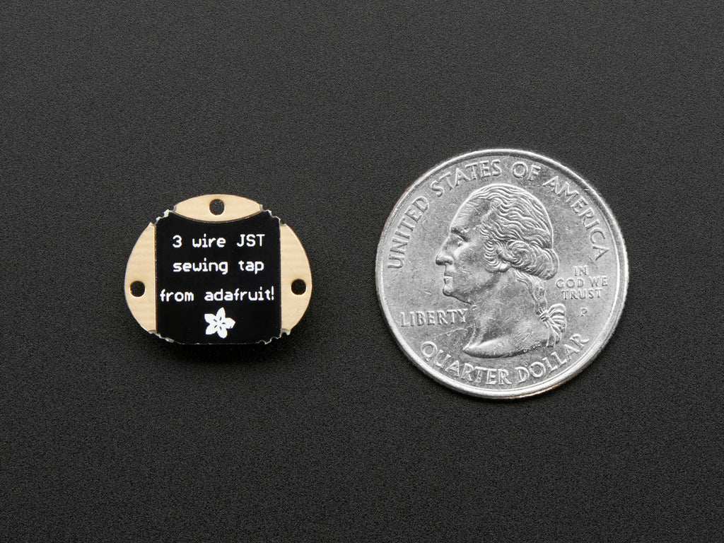 This board is a sewable adapter with a 3-pin JST wiring adapter. It's a perfect way to add a simple link between things like our Flora NeoPixels and more complicated products like our NeoPixel Rings. There are three holes on the board that are perfect for conductive thread (or soldering if you so choose), wired to a single 3-pin JST-PH Adapter.