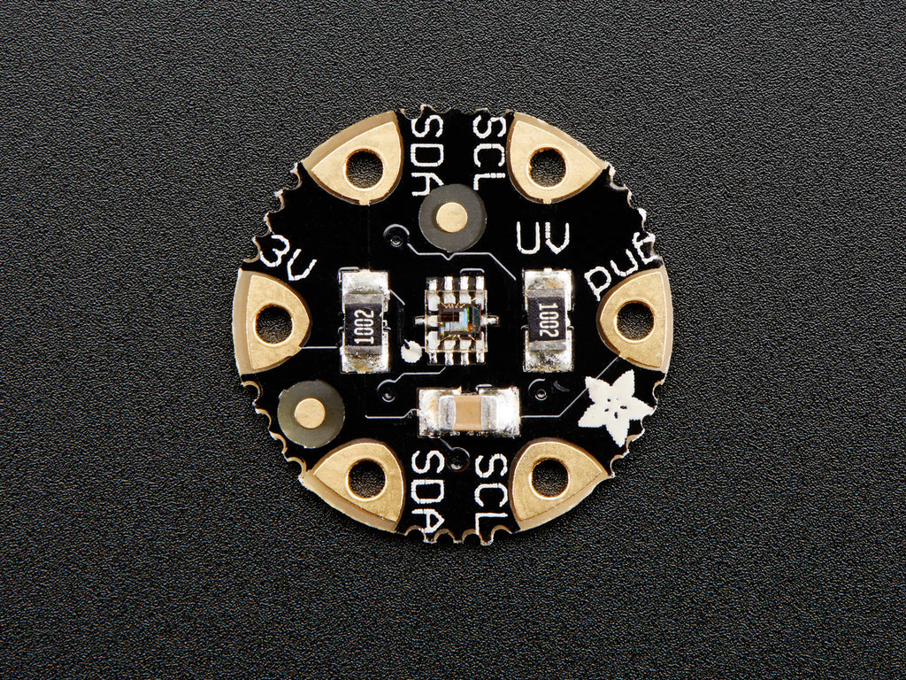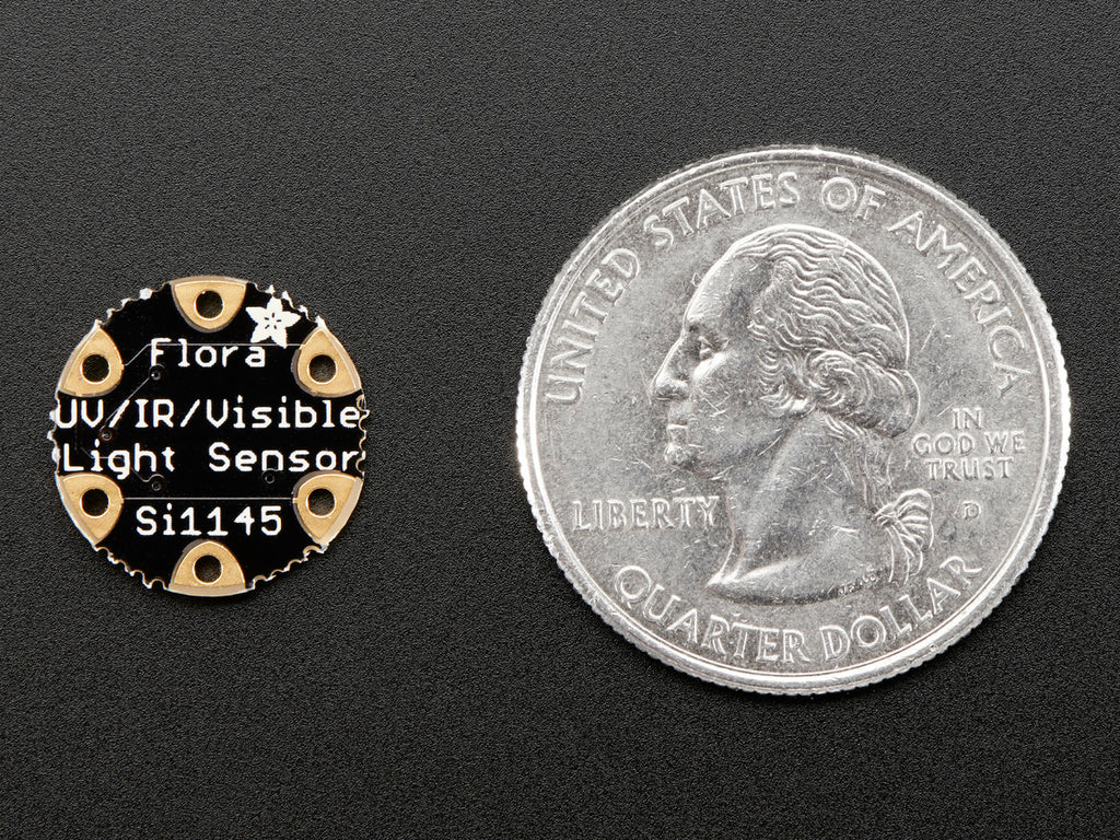 Your wearable can now keep you from getting sunburnt, with the Flora digital UV index sensor. We took our popular SI1145 UV index sensor and cut out everything you don't need for using with a Flora. It's small, round, and connects to the I2C bus pads. Flora can even use our library code to get calibrated light level and UV index data from the sensor.