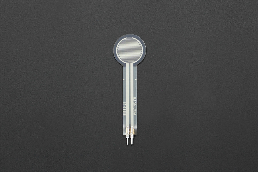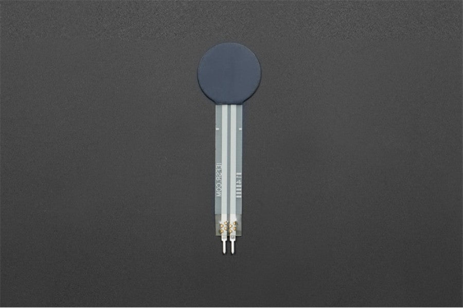 This is a force sensitive resistor with a round, 0.5" diameter, sensing area. This FSR will vary its resistance depending on how much pressure is being applied to the sensing area. The harder the force, the lower the resistance. When no pressure is being applied to the FSR its resistance will be larger than 1MΩ. This FSR can sense applied force anywhere in the range of 100g-10kg.