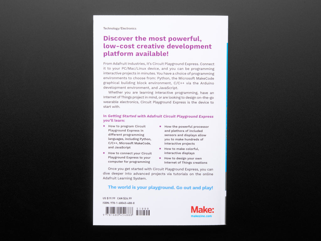 This book gives you the low-down on microcontrollers by learning how to use the Express with Microsoft MakeCode and CircuitPython. You'll also learn how to configure your board and have fun in the Arduino IDE! Also includes a forward from Limor "Ladyada" Fried (designer of the Circuit Playground)