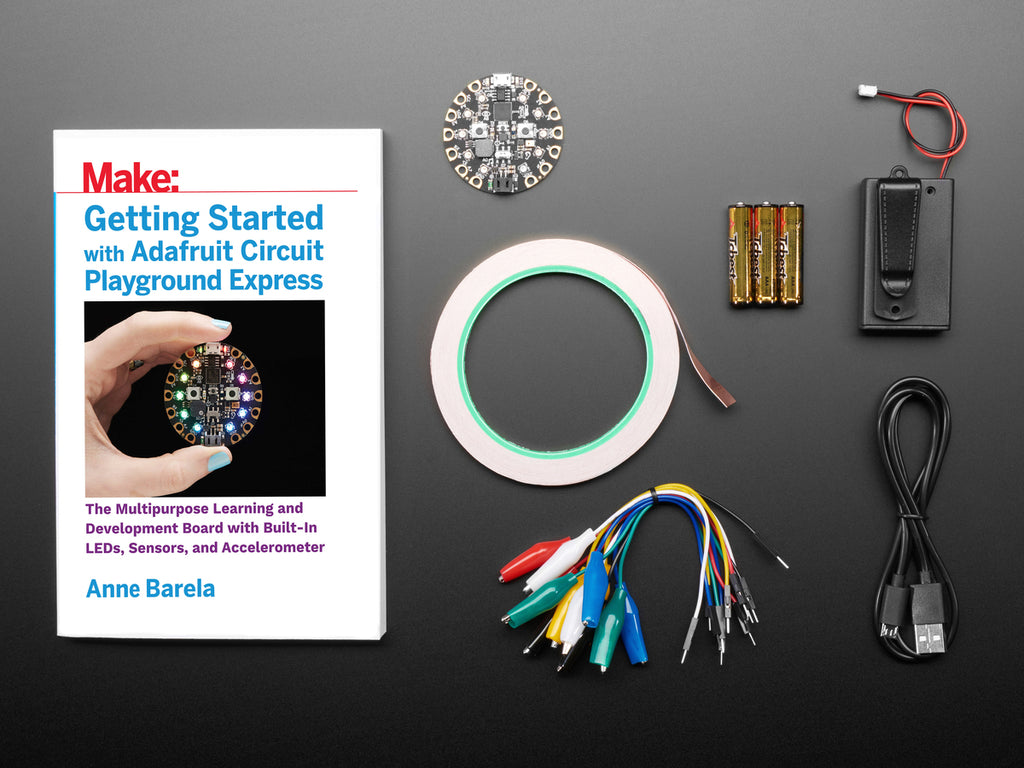 The bestselling book Getting Started with Circuit Playground Express now comes with a full pack of parts so you can hit the ground running! Getting Started with Circuit Playground Express is written by our friend, Anne Barela, author of G.S.W. Adafruit Trinket. Anne is a life-long engineer, Maker, writer, and has joined the Adafruit team to write guides and develop new projects.