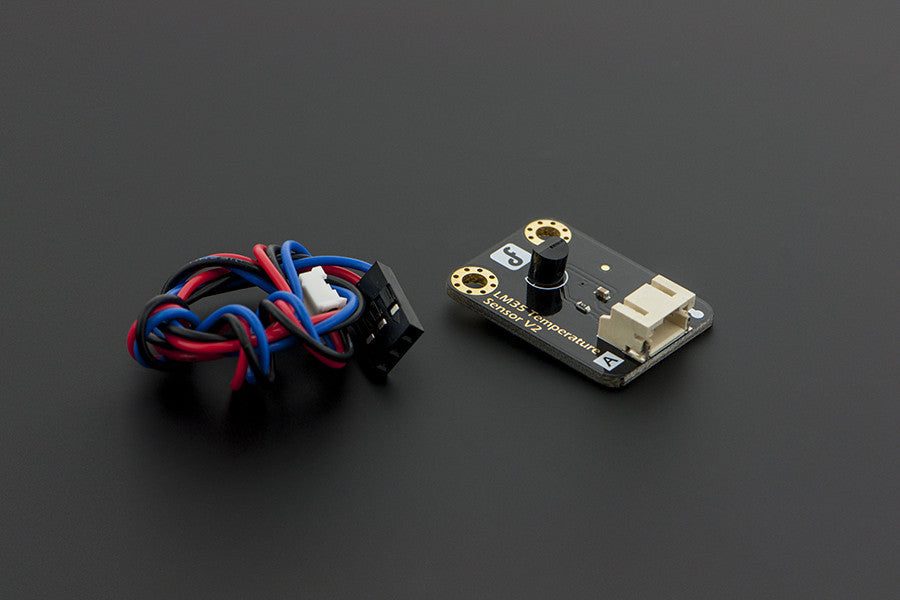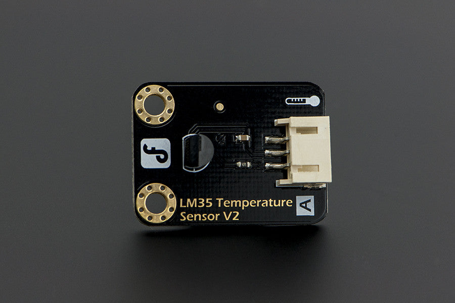 The DFRobot LM35 Linear Temperature Sensor is based on the semiconductor LM35 temperature sensor. The DFRobot LM35 Linear Temperature Sensor can be used to detect ambient air temperature. The LM35 chip is produced by National Semiconductor Corporation and offers a functional range between 0 degree Celsius to 100 degree Celsius with a sensitivity of 10mV per degree Celsius. The output voltage is proportional to the temperature.