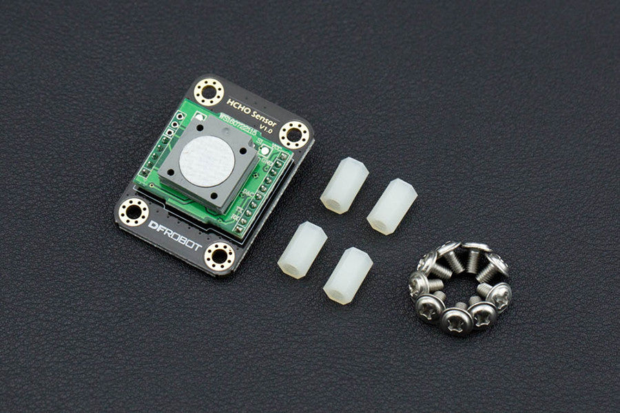 DFRobot Gravity Formaldehyde sensor module can detect and measure HCHO gas concentration accurately. Many advantages are available, such as strong anti-jamming capability, high stability, ATC, high sensitivity(up to 0.01ppm) and long life(2 years in air). It also support 3.3~6V wide range power supply, it means it could be used with Arduino and Raspberry Pi directly. The Formaldehyde monitor integrates with Gravity Interface, easy to use, plug and play. According the sample codes, it is easy to make your own formaldehyde detector. Combined with IOT, it is possible to make an automaic air quality station which can measure HCHO in different sites.